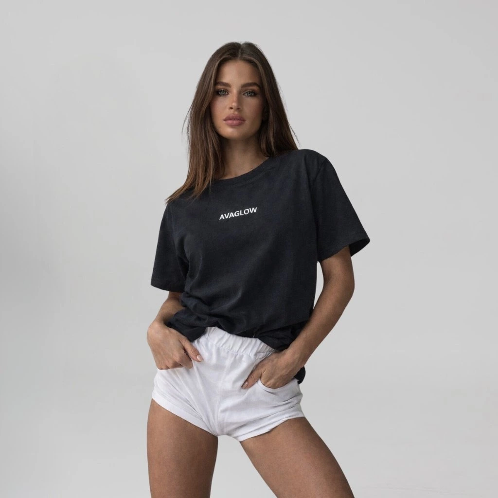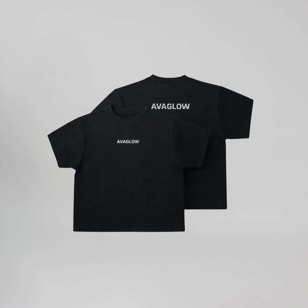VYŠITÝ NÁZEV AVAGLOW NA PŘEDNÍ STRANĚ A VETŠÍ NA ZADNÍ STRANĚ TRIKA